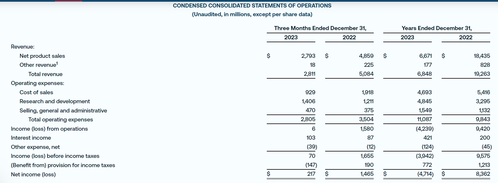 莫德纳2023年财报数据